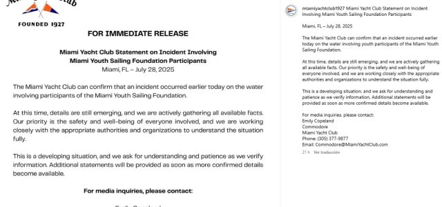 El Miami Yacht Club concluyó su comunicado asegurando que se proporcionarán declaraciones adicionales «tan pronto como haya más detalles confirmados».